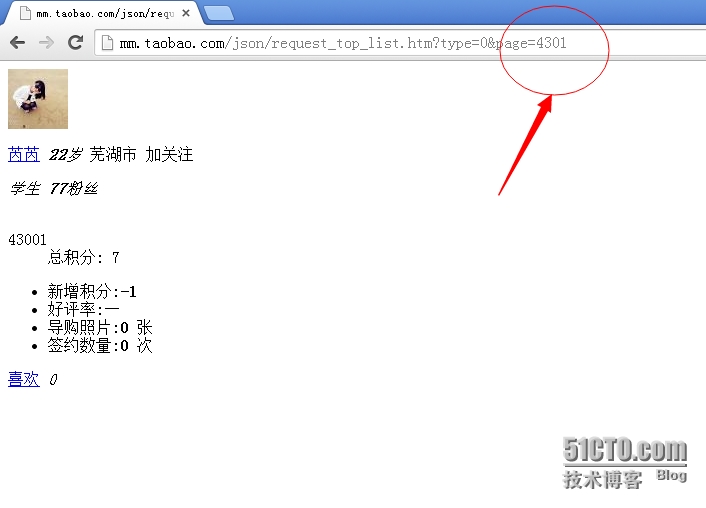 指定的淘宝mm的url为:http://mm.taobao.com/json/request_top_list.htm?type=0&page=1