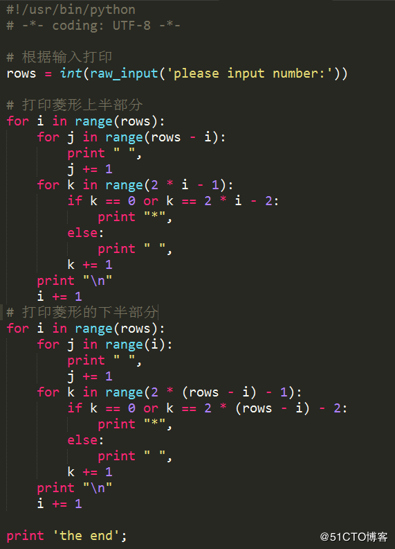 # 打印菱形的下半部分