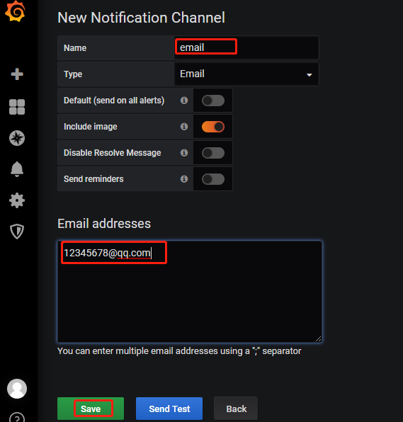 #################################### SMTP / Emailing ########################## [smtp] enabled = true host = smtp.mxhichina.com:465 user = monitor@xx.com password = 123456 from_address = monitor@xx.com from_name = Grafana skip_verify = true ehlo_identity = xx.com