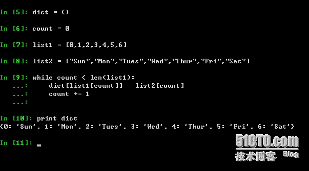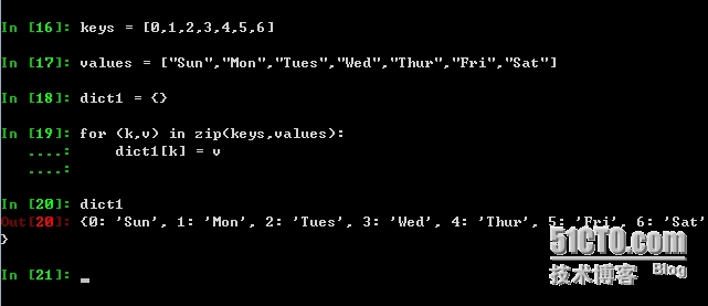 以列表list1=[0,1,2,3,4,5,6]中的元素为键,以list2=["Sun","Mon","Tues","Wed","Thur","Fri","Sat"]中的元素为值生成字典dict